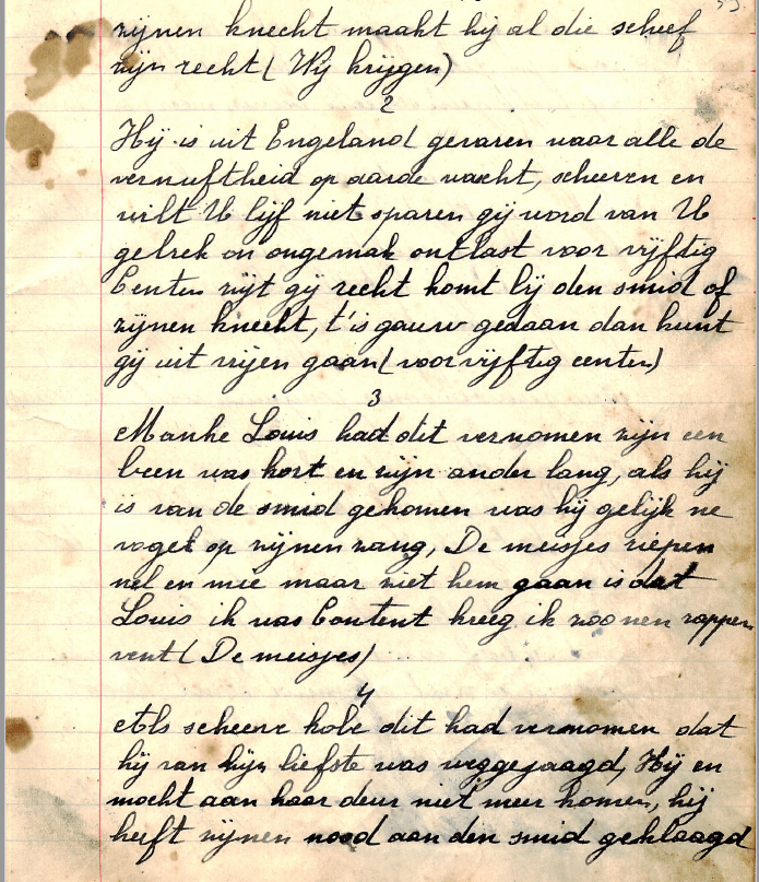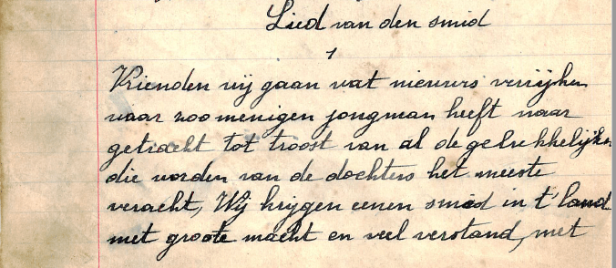 Een duidelijk verwant lied vonden we terug in het liedjesschrift dat Victorine Laes ruim 100 jaar geleden vol pende. Het kan trouwens gezongen worden op dezelfde melodie!