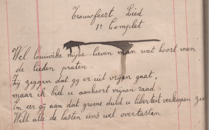 Eerste lied in het schrift van Victorine Laes. Florentine Sterckx heeft het lied ook in haar schrift staan.